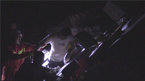 當(dāng)夜,消防指戰(zhàn)員接到調(diào)派命令后迅速趕往事故現(xiàn)場(chǎng)。指揮員觀(guān)察了解得知,側(cè)翻的是一輛重型推土車(chē),由于作業(yè)區(qū)地面不平,司機(jī)在倒車(chē)時(shí)車(chē)輛發(fā)生側(cè)翻,欲打開(kāi)車(chē)門(mén)跳車(chē)未果,左臂反而被車(chē)輛駕駛室一側(cè)死死壓在地面上,無(wú)法動(dòng)彈。當(dāng)時(shí)工地上沒(méi)有同事,周邊也沒(méi)有行人,呼救無(wú)應(yīng)后,司機(jī)忍著巨烈疼痛摸到手機(jī)電話(huà)求救。