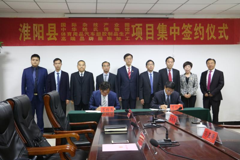 本次會議共簽約四個項目,總投資約17.5億元。分別是:河南龍都文化娛樂有限公司投資5.1億元的國際產(chǎn)業(yè)園項目。翰高兄弟(北京)投資集團(tuán)投資10億元的中華姓氏博物館項目。東莞啟昊服飾有限公司投資1.2億元的高檔服飾加工項目;溫州奕銘新材料股份有限公司投資1.2億元的體育及汽車用品項目。