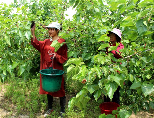 除此之外,桑果的采摘全靠人工,是勞動(dòng)密集型產(chǎn)業(yè),需要大量當(dāng)?shù)氐膭趧?dòng)力,每到采摘季節(jié),公司都會(huì)招用周邊200余名村民到種植基地務(wù)工,僅此一項(xiàng),為每名務(wù)工人員人均增收3000余元?!鞍吃谝嫫飞i┓N植基地采摘桑椹,每天都有100多元的收入?!苯衲?3歲的黃橋鄉(xiāng)孫堤村留守婦女趙美容高興的說。