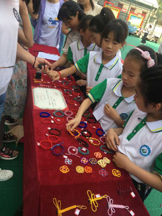5月25日上午,沈丘縣中國結(jié)第七代傳承人李海花走進槐店鎮(zhèn)回民小學,和學?!爸袊Y(jié)”手工編織興趣班的20名學生舉行“愛心義賣,情暖校園”主題活動。不到半小時,100多件作品被搶購一空還預定了很多。據(jù)悉,這次義賣共得到1200余元,將全部捐給“槐店鎮(zhèn)中心學校教育基金”,用來資助該鎮(zhèn)經(jīng)濟困難師生、獎勵優(yōu)秀教師和學生、資助教育教研等重大活動項目。