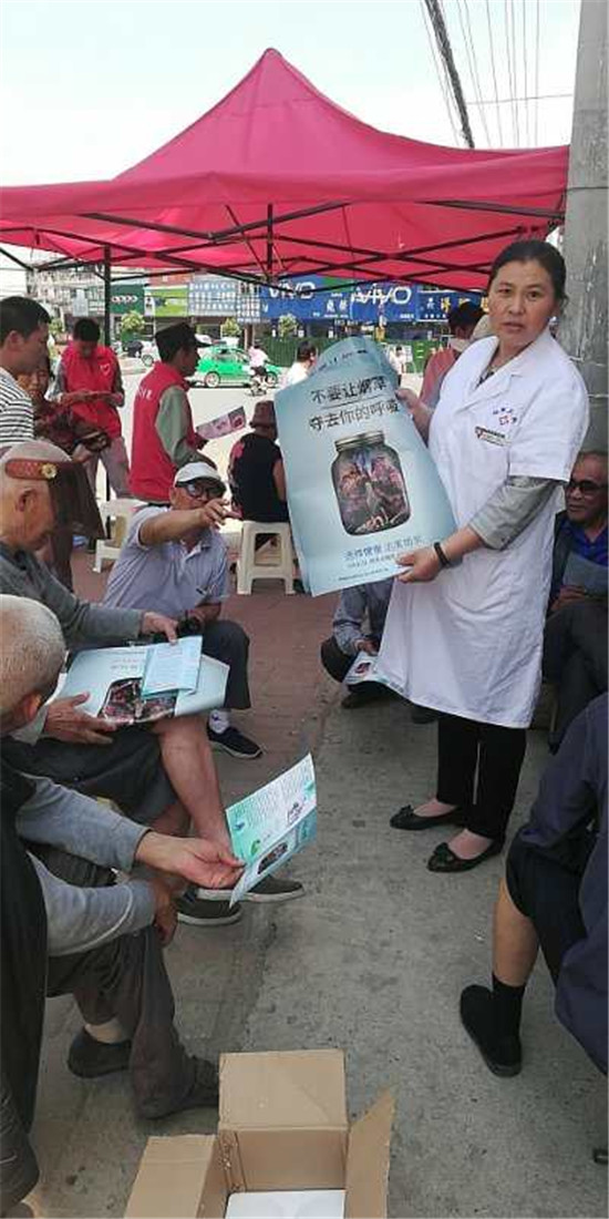 該縣疾控中心組織8名工作人員,在支農(nóng)路北段以懸掛宣傳主題橫幅、擺放宣傳展板、設(shè)立義診咨詢臺(tái)、發(fā)放宣傳資料等形式,向過(guò)往市民宣傳吸煙可導(dǎo)致肺部損傷和增加高血壓風(fēng)險(xiǎn)等危害,以及戒煙的方法等知識(shí),引導(dǎo)大家遠(yuǎn)離煙草,養(yǎng)成健康、文明的生活方式。