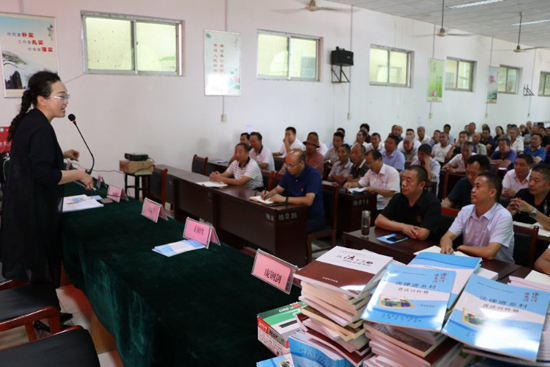 鄉(xiāng)村兩級干部學法的熱情感動了崔姝娉律師,她顧不上喝水和休息,隨機走上講臺開始講座。如何圍繞預(yù)防職務(wù)犯罪、從嚴治黨、反腐倡廉、提升自身素養(yǎng)……每一個內(nèi)容,崔姝娉都列舉了一些實際案列,并通過以案說法、以案釋法的方式,多角度重點分析了鄉(xiāng)村兩級干部多發(fā)易發(fā)違法違紀的薄弱環(huán)節(jié),提出預(yù)防違法違紀的對策和建議,讓大家筑牢法律防線,防止違法違法違紀。同時,崔姝娉律師還和在座的鄉(xiāng)村干部進行了互動,并向大家講解了調(diào)解糾紛的技巧和方法。