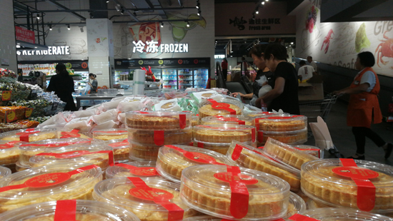 8月26日,市民在中心城區(qū)七一路與中州大道交叉口附近的一座大型超市里選購(gòu)月餅。