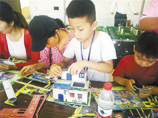 9月7日,約100名周口報(bào)業(yè)商水小記者在商水縣商寧路建業(yè)城售樓部參加“愛家愛商水”手工拼裝房大賽活動(dòng)。
