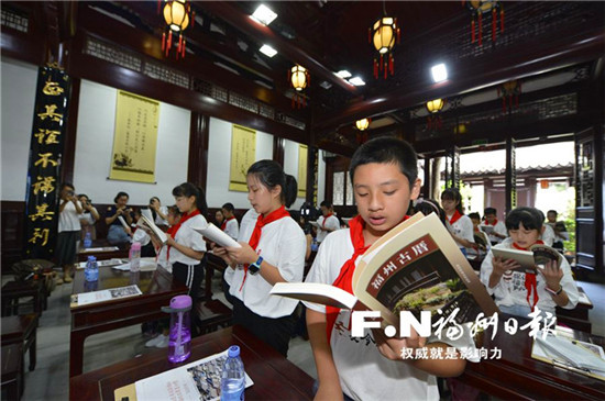 “我宣誓,保護(hù)福州古厝,傳承歷史文脈,從小做起,從我做起!”19日上午,由福州日?qǐng)?bào)和福州市教育局聯(lián)合舉辦的“探訪總書(shū)記牽掛的福州古厝”夏令營(yíng)活動(dòng)在鰲峰書(shū)院?jiǎn)?dòng)。