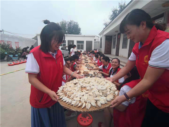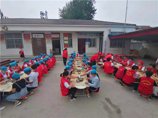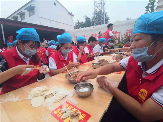 當(dāng)天上午,一場(chǎng)由周口市紀(jì)委監(jiān)委駐杜崗村工作隊(duì)聯(lián)合紅花鎮(zhèn)、杜崗村、周口北斗達(dá)教育集團(tuán)共同舉辦的孝老餃子宴,在該村文化廣場(chǎng)別開(kāi)生面地拉來(lái)序幕。“村里所有60歲(含60歲)以上的老人今天中午都到文化廣場(chǎng)來(lái)吃餃子啊,市紀(jì)委和愛(ài)心企業(yè)來(lái)為我們包餃子啦……”8時(shí)剛過(guò),杜崗村黨支部書(shū)記李長(zhǎng)青就通過(guò)村里的大廣播每隔半小時(shí)播報(bào)一次,生怕哪位老人忘了這檔子事兒。