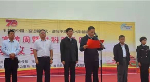9月16日上午,2019年淮陽縣網(wǎng)絡安全宣傳暨社科普及周啟動儀式在羲皇文化廣場舉行。啟動儀式上,縣委書記馬明超宣布2019年淮陽縣網(wǎng)絡安全宣傳暨社科普及周啟動??h委常委、宣傳部長謝留定,縣人大常委會副主任張凌君,縣政協(xié)副主席李守運,縣總工會主席丁永華,縣公安局長李鳳麗等出席活動。