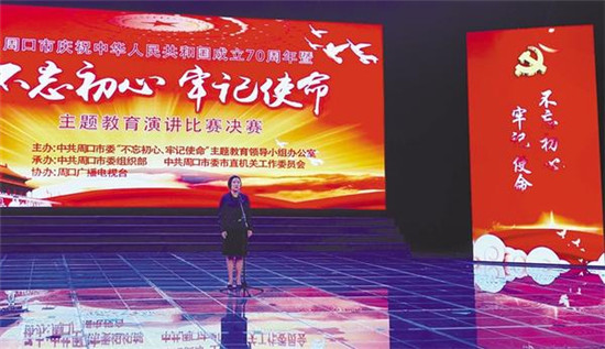 開(kāi)發(fā)區(qū)積極響應(yīng)號(hào)召,組織人員參加全市慶祝中華人民共和國(guó)成立70周年暨“不忘初心、牢記使命”主題教育演講比賽。開(kāi)發(fā)區(qū)機(jī)關(guān)第一黨支部黨員李媛媛經(jīng)過(guò)激烈角逐,順利進(jìn)入決賽。記者 王泉林 攝