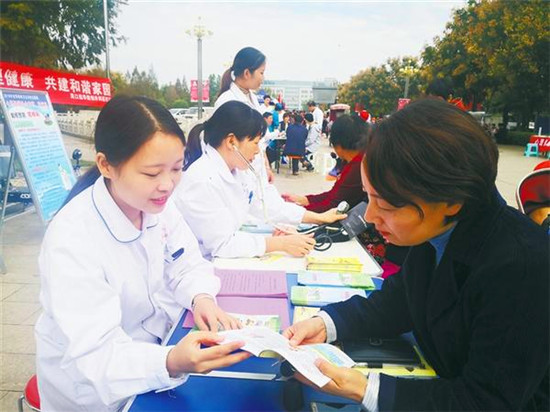 10月10日是世界精神衛(wèi)生日,當(dāng)日上午9時(shí)至11時(shí),周口市衛(wèi)健委組織我市28家醫(yī)院在川匯區(qū)文化廣場(chǎng)舉辦主題為“心理健康社會(huì)和諧,我行動(dòng)”的義診活動(dòng)。活動(dòng)現(xiàn)場(chǎng),100多名醫(yī)務(wù)人員向群眾提供免費(fèi)疾病咨詢(xún),宣傳普及精神衛(wèi)生健康醫(yī)學(xué)知識(shí),紛紛開(kāi)出身心健康處方,受到群眾的熱烈歡迎。