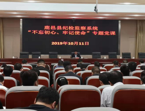10月11日,鹿邑縣委常委、紀委書記、監(jiān)委主任韓林利用縣紀委監(jiān)委“不忘初心、牢記使命”主題教育集中學(xué)習(xí)時間以《砥礪初心本色 ,強化使命擔當,奮力推進新時代紀檢監(jiān)察工作高質(zhì)量發(fā)展》為題為全縣紀檢監(jiān)察系統(tǒng)全體干部上了一堂生動的專題黨課。