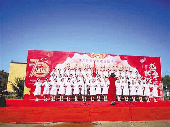 近日,在扶溝縣委宣傳部主辦的“群星耀中原·出彩新扶溝”群眾合唱展演活動中,來自全縣各界的12支合唱隊、700多名文藝愛好者用一首首催人奮進(jìn)的贊歌,為新中國成立70周年獻(xiàn)禮,唱出了愛黨、愛國、愛家鄉(xiāng)的熾熱情懷。