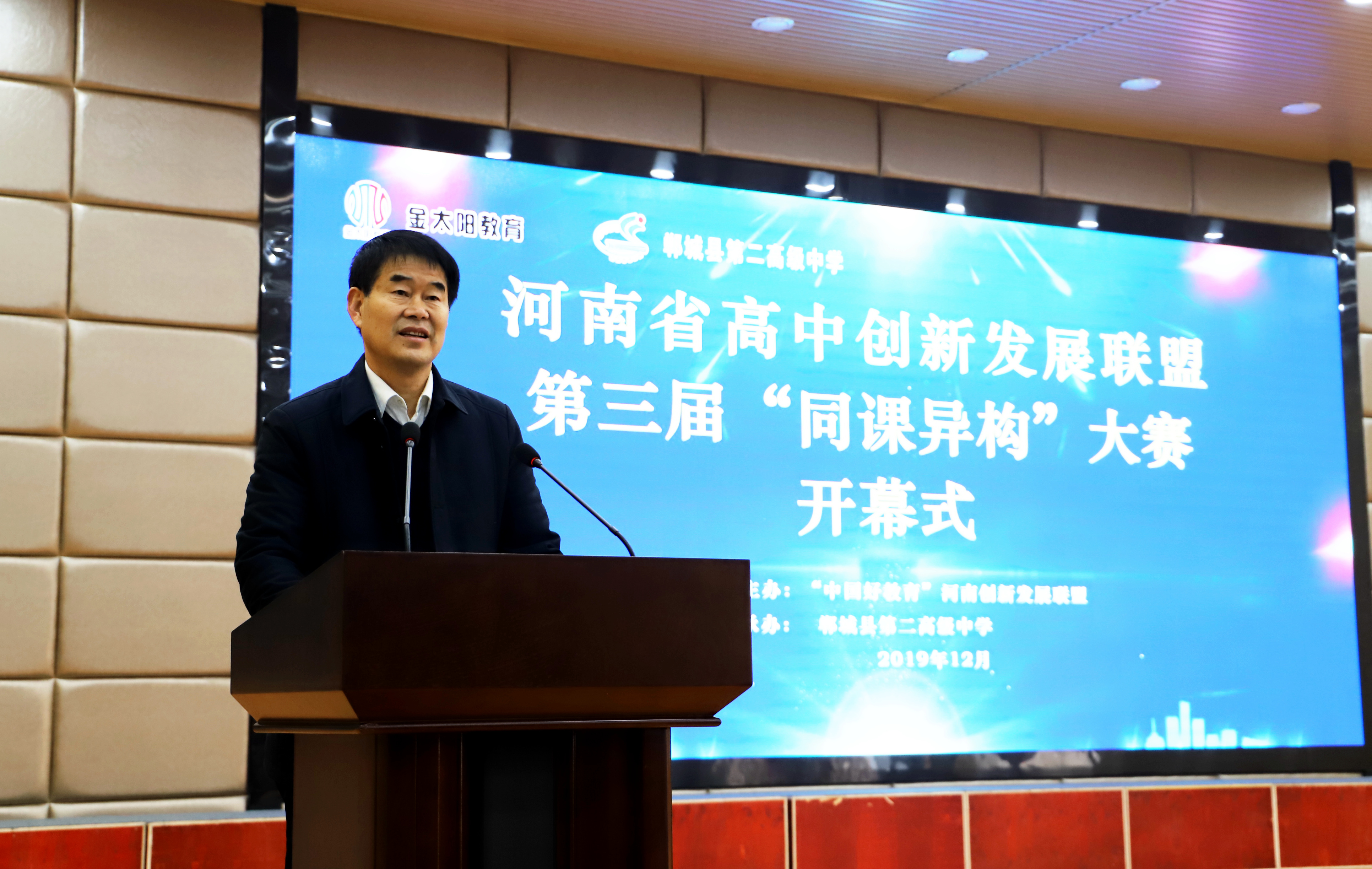 12月7日,由河南省高中創(chuàng)新發(fā)展聯(lián)盟主辦、鄲城二高承辦的全省第三屆“同課異構(gòu)”大賽開(kāi)幕。鄲城縣教體局黨組書(shū)記、局長(zhǎng)劉現(xiàn)營(yíng)出席開(kāi)幕式并致詞。來(lái)自全省15個(gè)縣市區(qū)的高中代表隊(duì)將在3天賽期內(nèi)各展風(fēng)采,共通思想、共享智慧、共融發(fā)展。