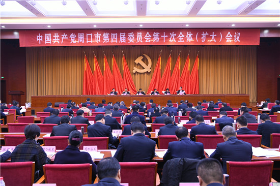 12月12日上午,中國共產(chǎn)黨周口市第四屆委員會第十次全體(擴(kuò)大)會議在周召開。全會高舉習(xí)近平新時(shí)代中國特色社會主義思想偉大旗幟,深入學(xué)習(xí)貫徹習(xí)近平總書記視察河南重要講話、黨的十九屆四中全會和省委十屆十次全會精神,動(dòng)員全市上下在譜寫新時(shí)代中原更加出彩絢麗篇章中牢記初心使命、展現(xiàn)擔(dān)當(dāng)作為、提升治理水平,奮力開創(chuàng)高質(zhì)量跨越發(fā)展新局面,繪就新時(shí)代周口特色添彩畫卷。