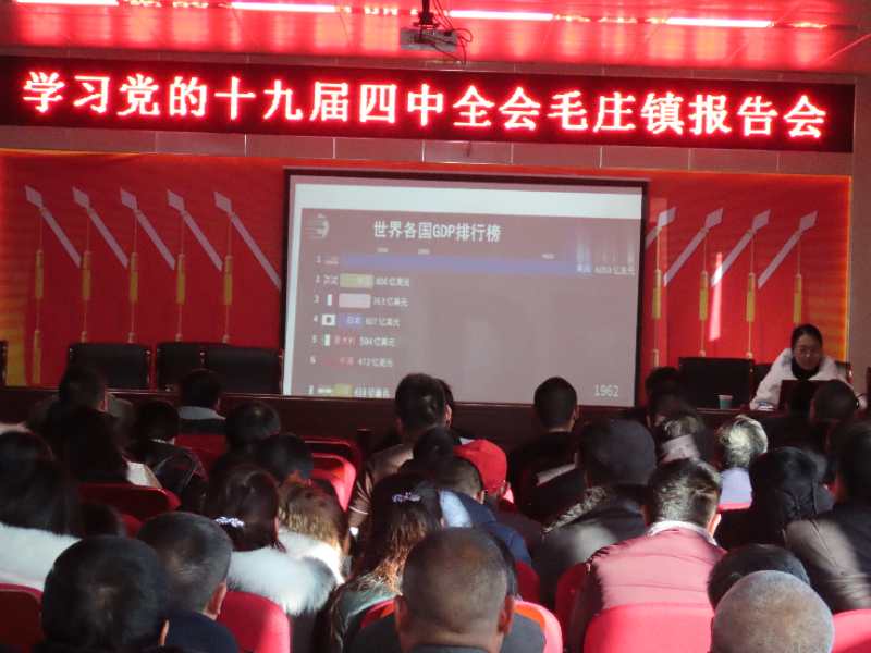 2019年12月31日下午,太康縣毛莊鎮(zhèn)在政府四樓會議室舉行學習黨的十九屆四中全會精神報告會,鎮(zhèn)全體干部職工、鎮(zhèn)直各單位負責人、村兩委干部、駐村第一書記參會。會議由宣傳委員、副鎮(zhèn)長馬巖主持。