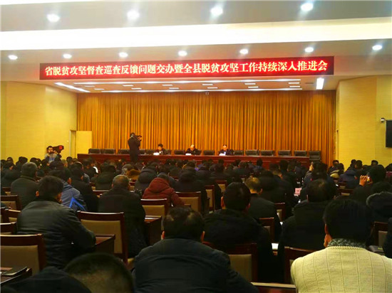 1月3日,扶溝縣召開省脫貧攻堅(jiān)督查巡查問題交辦暨全縣脫貧攻堅(jiān)工作推進(jìn)會(huì)??h委副書記、縣政法委書記詹凱主持會(huì)議??h委常委、縣政府黨組成員段然,縣委常委、副縣長(zhǎng)趙紅亮出席會(huì)議??h直各單位一把手、相關(guān)行業(yè)部門分管扶貧工作的副職,各鄉(xiāng)鎮(zhèn)(街道)黨(工)委書記、分管扶貧工作的副職、扶貧辦主任,81個(gè)貧困村的黨支部書記、駐村第一書記參加會(huì)議。