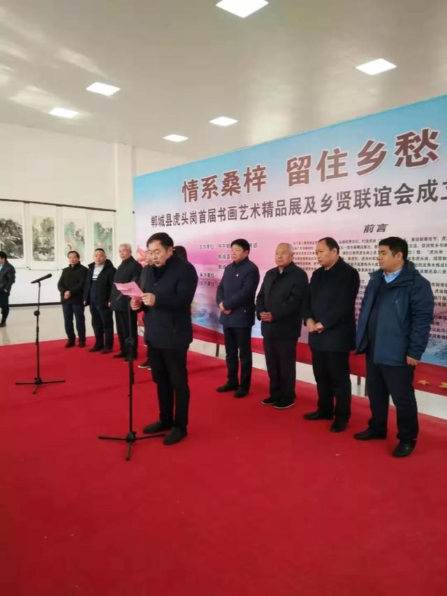 縣委常委、宣傳部長吳青鋒,縣委常委、統(tǒng)戰(zhàn)部長薛燕,縣政府黨組成員張仁杰,原省技術(shù)監(jiān)督局副局長梁金光,虎崗鄉(xiāng)黨委書記趙強、鄉(xiāng)長劉體光,知名畫家段忠勇、鄲城縣美協(xié)名譽主席梁景才,縣文聯(lián)副主席王忠樸等參加活動??h政協(xié)副主席王巖主持。