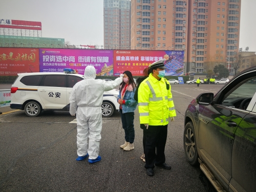 1月27日,寧洛高速沈丘縣收費站口,地方交警和醫(yī)護工作人員正在對每一臺下高速的車輛上的司乘人員進行體溫測量,檢查行駛證、駕駛證和身份證。目前,周口市境內(nèi)各收費站和服務(wù)區(qū)設(shè)立衛(wèi)生檢疫站,配備體檢測溫設(shè)備,對每一臺下高速的車輛上的司乘人員進行體溫測量,檢查行駛證、駕駛證和身份證。同時,要求各單位每天要對設(shè)施和??拷煌üぞ呦?,室內(nèi)要保持通風(fēng)。