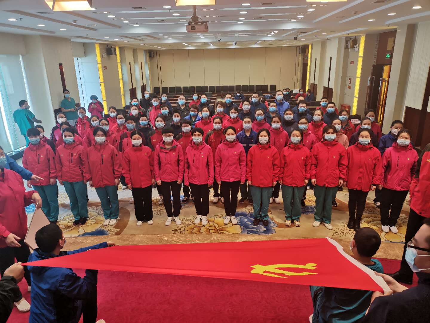 3月19日,周口援鄂醫(yī)療隊(duì)周口市中心醫(yī)院祁文麗、徐貴琴、解玉東、王亞麗、王玉才、王冰清6名隊(duì)員,站在鮮紅的黨旗面前莊嚴(yán)宣誓志愿加入中國(guó)共產(chǎn)黨。