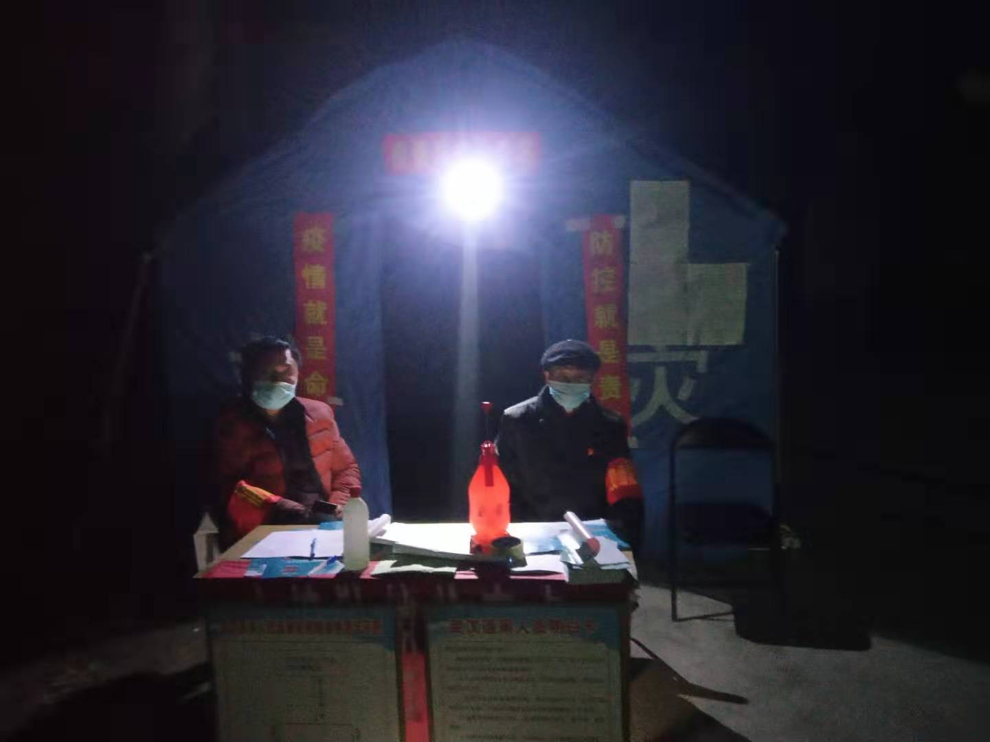 北岳村是白寺鎮(zhèn)最大的村,有大小出村路口20多個,疫情防控難度大。該村除村干部、村醫(yī)以外,又動員了教師、黨員、志愿者80余人參與卡點值班。自1月26日大年初二設(shè)立卡點以來,24小時都有人值班,吃飯輪班,有的把飯送過來吃。晚上留專人住在帳篷里。9天來,這個卡點已累計勸返人員280人次,勸返車輛80多輛次,登記進出村莊人員430人次。