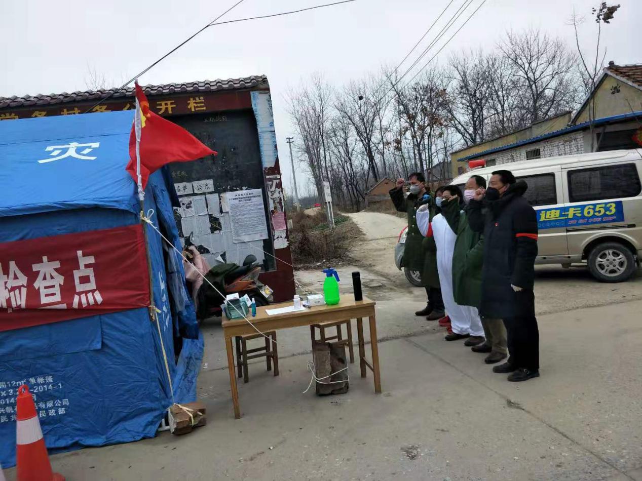 “我莊嚴宣誓,為維護人民群眾身體健康及生命安全,全力做好新型冠狀病毒感染的肺炎疫情防控工作,誓死捍衛(wèi)新時代黨員干部的使命與擔當?!边@是付集鎮(zhèn)黨委副書記曹懷永帶領(lǐng)張埝卡點宣誓的場景。2月5日,這段感人而又讓人充滿信心的宣誓聲,在付集大地相繼響起,張埝卡點一線臨時黨支部正式成立。