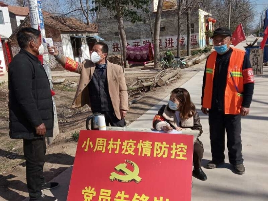 在虎崗鄉(xiāng)小周行政村路口的疫情防控黨員先鋒崗,3名入黨積極分子自發(fā)進(jìn)行輪流值守,積極向群眾宣傳疫情防控知識,勸散聚集人員?!霸谝咔榉揽毓ぷ髦?,我們村及時(shí)響應(yīng),設(shè)立了黨員先鋒崗,組織黨員和入黨積極分子參與卡點(diǎn)執(zhí)勤、疫情知識宣傳、摸底排查,建立起聯(lián)防聯(lián)控、群防群治的工作體系?!编惓强h農(nóng)科所駐該村第一書記謝付振說。