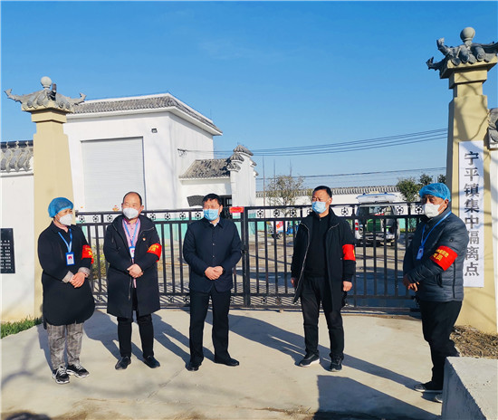 2月18日,鄲城縣公安局長陳鳳祥先后深入寧平鎮(zhèn)張集、陳堂、趙京行政村和相關(guān)超市檢查指導疫情防控工作,實地查看寧平鎮(zhèn)集中隔離點建設(shè)情況。寧平鎮(zhèn)黨委書記徐汝敏、鎮(zhèn)長王樹勤和公安局駐村第一書記朱金光參加。
