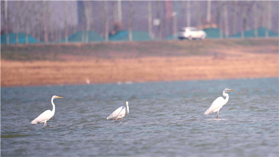 3月5日是驚蟄,俗語有“春雷驚百蟲”,從這一天開始,陽氣上升、氣溫回暖、春雷乍動、雨水增多,萬物生機盎然。驚蟄,自古以來是我國春耕開始的節(jié)令,冬眠的動物蘇醒,動物們也開始活躍起來。圖為3月4日我市引黃調(diào)蓄工程的兩千多畝湖泊里,水鳥翔集,喜歡水清的白鷺也出現(xiàn)在這里。記者 梁照曾 攝
