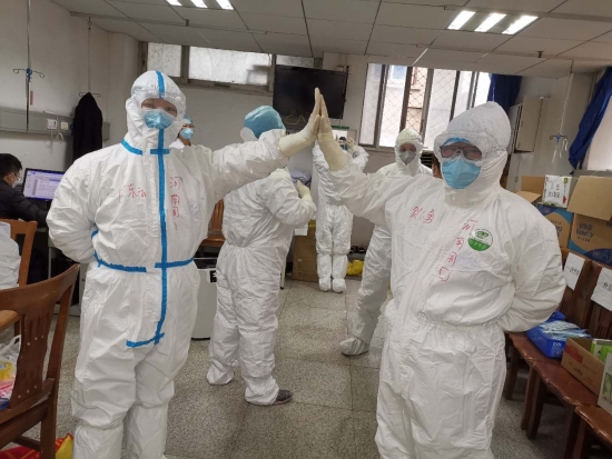 賀志勇說:“因為從2月14日起,港區(qū)醫(yī)院就開始對援鄂醫(yī)療隊員展開了培訓(xùn),經(jīng)過這段時間的準備,醫(yī)療隊對三級防護的工作流程已經(jīng)比較熟練,所以能夠很快進入工作角色。”由于武漢新冠肺長期以來缺乏醫(yī)護人員,訓(xùn)練有素的港區(qū)醫(yī)療隊快速進駐,為病區(qū)帶來新的氣象,醫(yī)療隊員們根據(jù)國家衛(wèi)建委發(fā)布的新冠肺炎第七版診療方案,對患者們進行診治的同時,實時認真觀察他們病情變化,了解他們的需求,為患者排憂解難。賀志勇告訴記者,港區(qū)醫(yī)院醫(yī)療隊進入病區(qū)后,很快就取得了患者們的信任,患者們說,從來沒見過像河南隊一樣,業(yè)務(wù)能力好、對患者又這么親切的。
