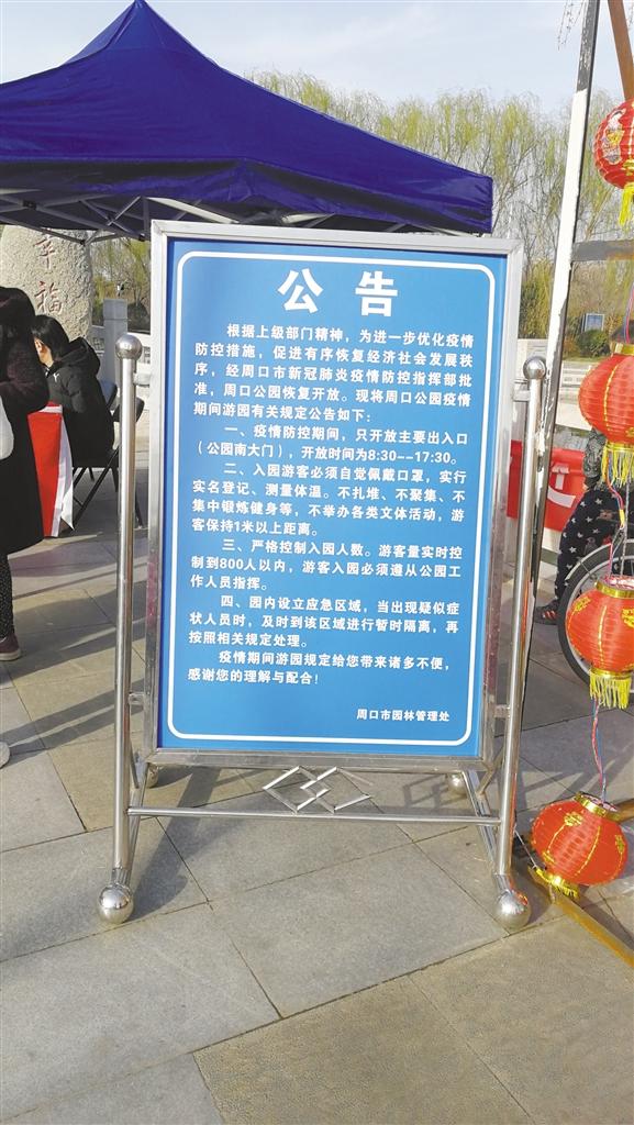 據(jù)了解,新冠肺炎疫情防控期間,周口公園開放時間較以前有所變動,目前只開放公園南大門。另外還需特別注意,游客入園時必須自覺佩戴口罩,不扎堆、不聚集,當(dāng)前,園內(nèi)禁止舉辦各類文體活動。