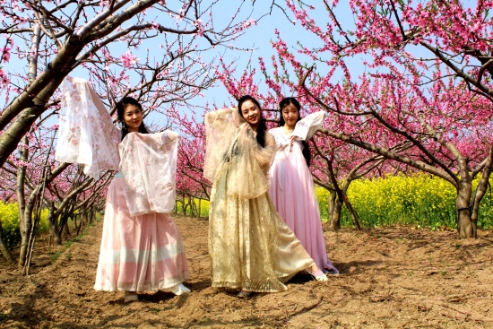陽(yáng)春三月,西華萬(wàn)畝桃園花開(kāi)正艷,朵朵桃花,燦若云霞。3月24日,在黃橋萬(wàn)畝桃園一片桃花叢中,七位貌美如花的美女,宛若桃花仙子,翩翩起舞。一旁的幾個(gè)靚女帥男,不時(shí)按下快門(mén),記錄下這美好的瞬間。