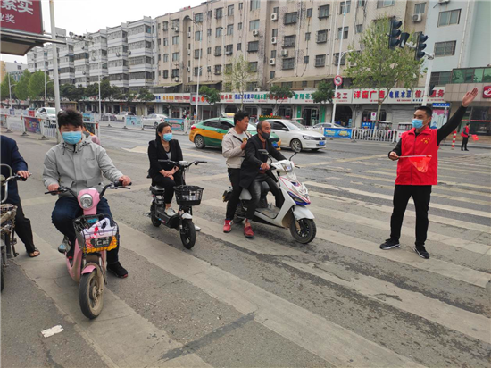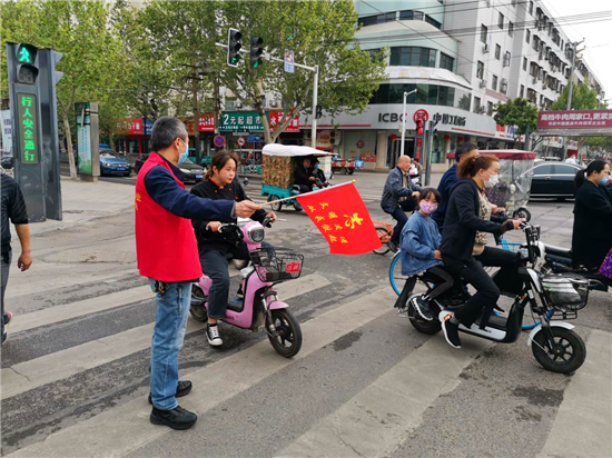 活動(dòng)中,機(jī)關(guān)、社區(qū)十余名志愿者穿著紅馬甲,手持小紅旗到交通路與五一路、六一路交叉口開(kāi)展文明交通勸導(dǎo)。志愿者們對(duì)部分市民闖紅燈、亂穿馬路、騎電動(dòng)車打電話等不安全的交通行為進(jìn)行勸阻,耐心引導(dǎo)行人和非機(jī)動(dòng)車輛遵守交通規(guī)則,并協(xié)助交警維持十字路口交通秩序。