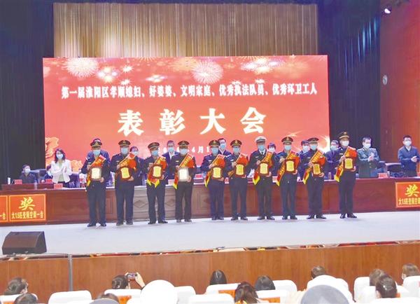 4月17日下午,淮陽(yáng)區(qū)在區(qū)群藝館報(bào)告大廳對(duì)孝順媳婦、好婆婆、文明家庭、優(yōu)秀執(zhí)法隊(duì)員、優(yōu)秀環(huán)衛(wèi)工人進(jìn)行了表彰。