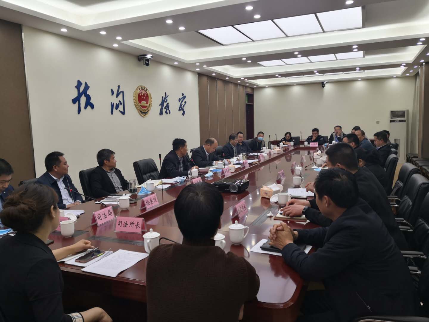 4月23日,扶溝縣委副書記、政法委書記詹凱主持召開扶溝縣市域社會治理座談會??h委政法委、法院、檢察院、公安局、司法局、信訪局、軍人事務局分管綜治和平安建設副職,部分鄉(xiāng)鎮(zhèn)街道分管副職和政法委員、基層法庭庭長、派出所長、司法所長、警務室和“一村一警”民警代表及政法委綜治指導室相關工作人員共三十余人參加了座談。