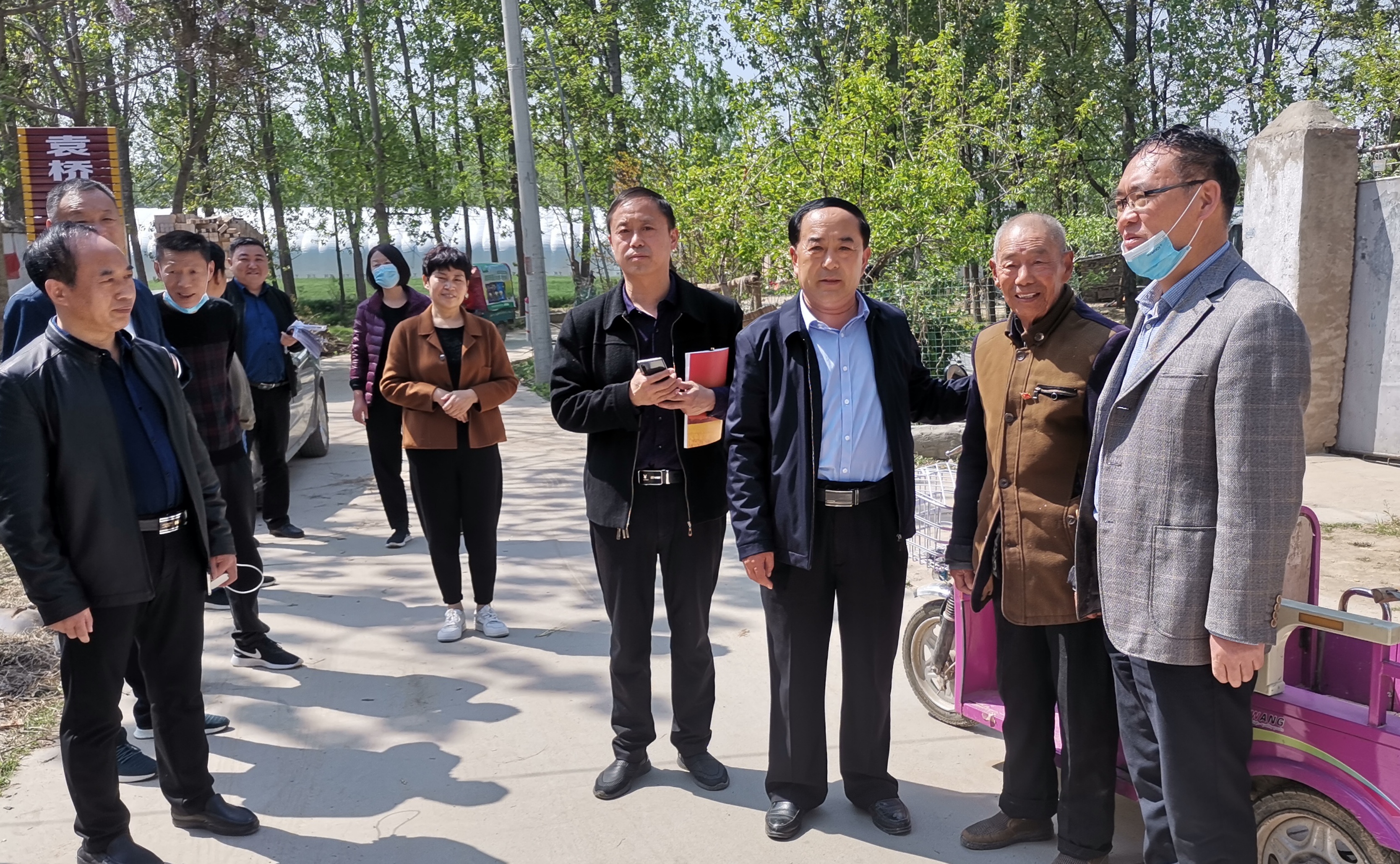 黨組書記張俊峰、局長葛澤洲在袁橋村指導扶貧工作,并和老黨員合影