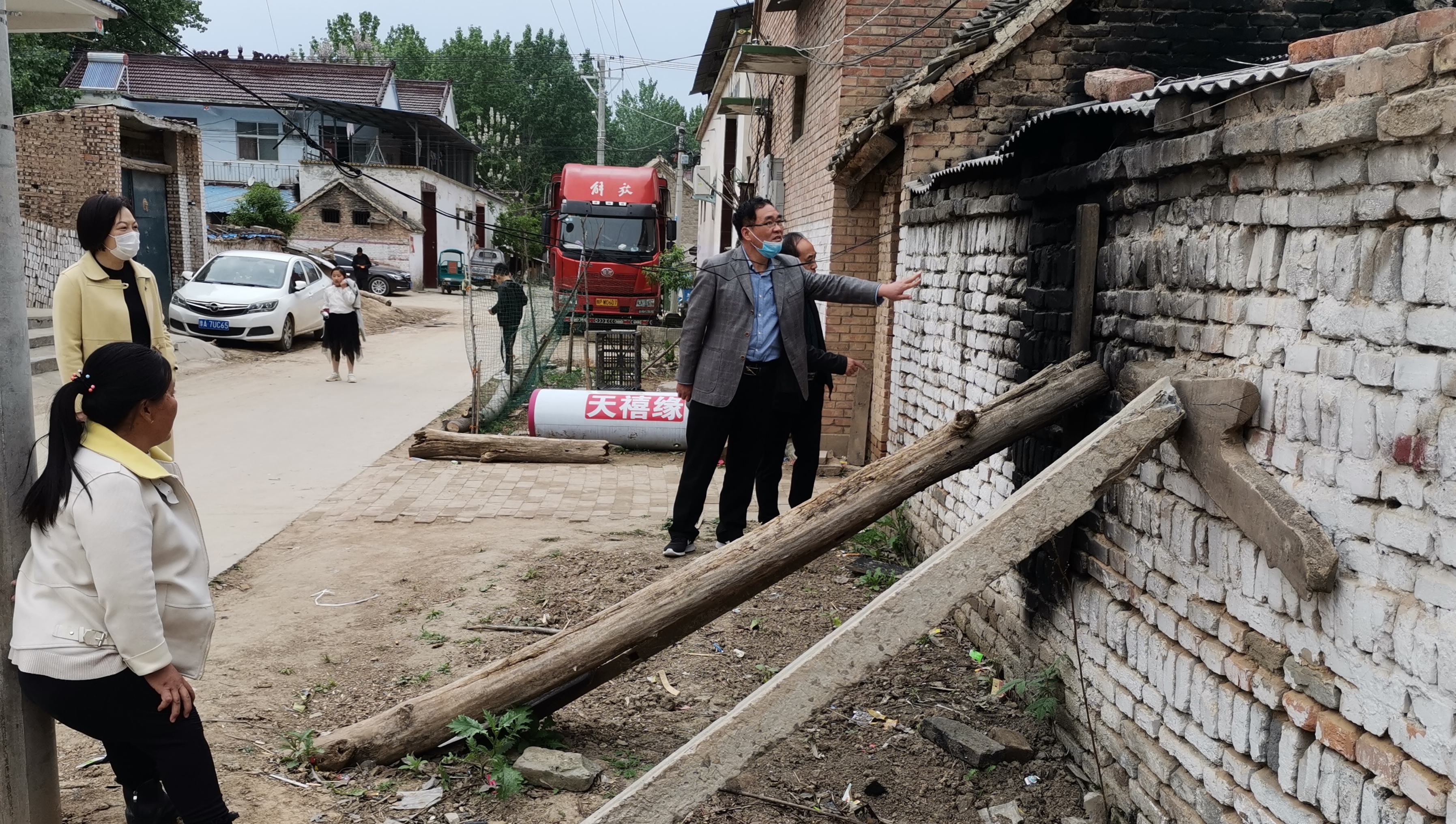 幫扶隊查看分包貧困戶危墻