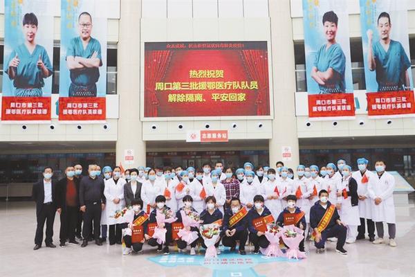 本報(bào)訊 (記者 宋風(fēng) 文/圖) 4月15日,周口港區(qū)醫(yī)院8位援鄂醫(yī)療隊(duì)員解除隔離回到單位,港區(qū)醫(yī)院為他們舉行了熱烈的歡迎儀式(右圖)。港區(qū)黨委委員張東立出席歡迎儀式,對(duì)港區(qū)醫(yī)院的8位抗疫英雄圓滿完成援鄂醫(yī)療救治任務(wù)平安歸來(lái)表示祝賀。