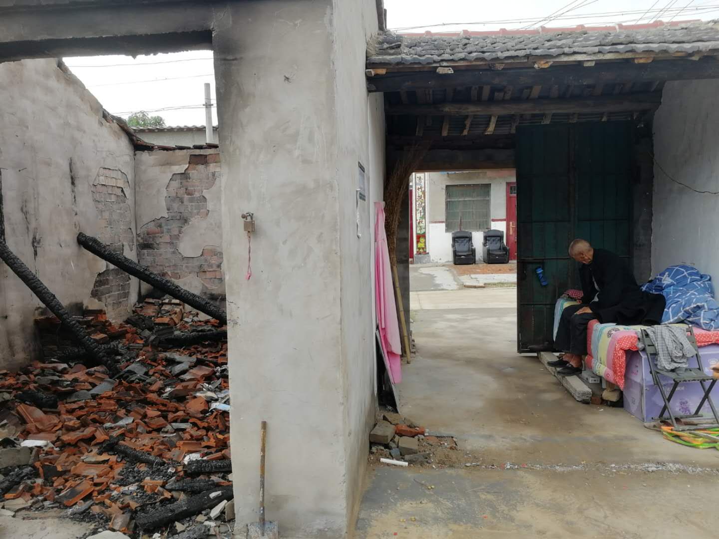 聽完情況后,督導(dǎo)組立刻和駐村工作人員一起到李洪范家查看情況,現(xiàn)場(chǎng)主屋已經(jīng)全部燒毀,屋里到處是瓦礫......李洪范站在被燒毀的房屋里,表情木納的自言自語道“燒得一干二凈,什么都沒了,這以后咋弄呀?!爆F(xiàn)場(chǎng)詢問其生活情況時(shí),李洪范說,“當(dāng)天,鄉(xiāng)里邊就送來了米、油和錢。村長(zhǎng)也送來了幾件衣服,現(xiàn)在就是沒有地方住?!?/p>