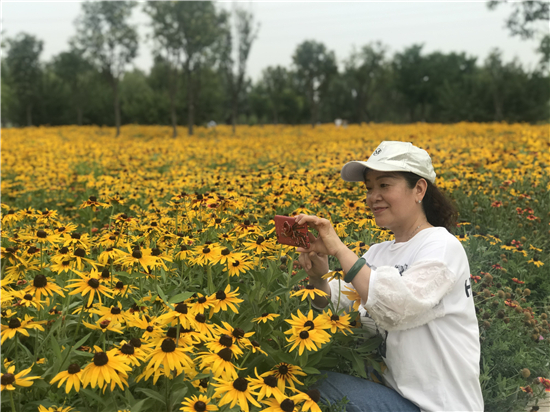 “不用移春檻,西風滿客車。行行無長物,粲粲只黃花?!苯瘴沂猩碀}河北岸的金光菊迎來了盛花期,吸引了市民們紛紛踏至。有的駐足靜尚、有的拍照留念、還有的拍個短視頻在朋友圈里曬一下,市民們在家門口就能享受這滿眼金黃帶來的幸福。