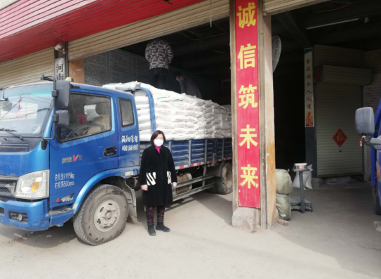 董君蓮還組織公司員工積極配合政府的工作安排,除了每天對廠區(qū)進(jìn)行消毒外,在工廠門口設(shè)立疫情防控卡點(diǎn)。她一邊為前來采購面粉的老百姓做好信息登記、測量體溫、酒精消毒并檢查是否佩戴口罩,一邊給老百姓宣傳疫情防控知識,幫老百姓抬面粉送車上,她講最多的一句話就是“要相信黨委政府,在共產(chǎn)黨的領(lǐng)導(dǎo)下,在咱老百姓的共同努力下,一定能早日勝利打贏抗擊疫情阻擊戰(zhàn)!”