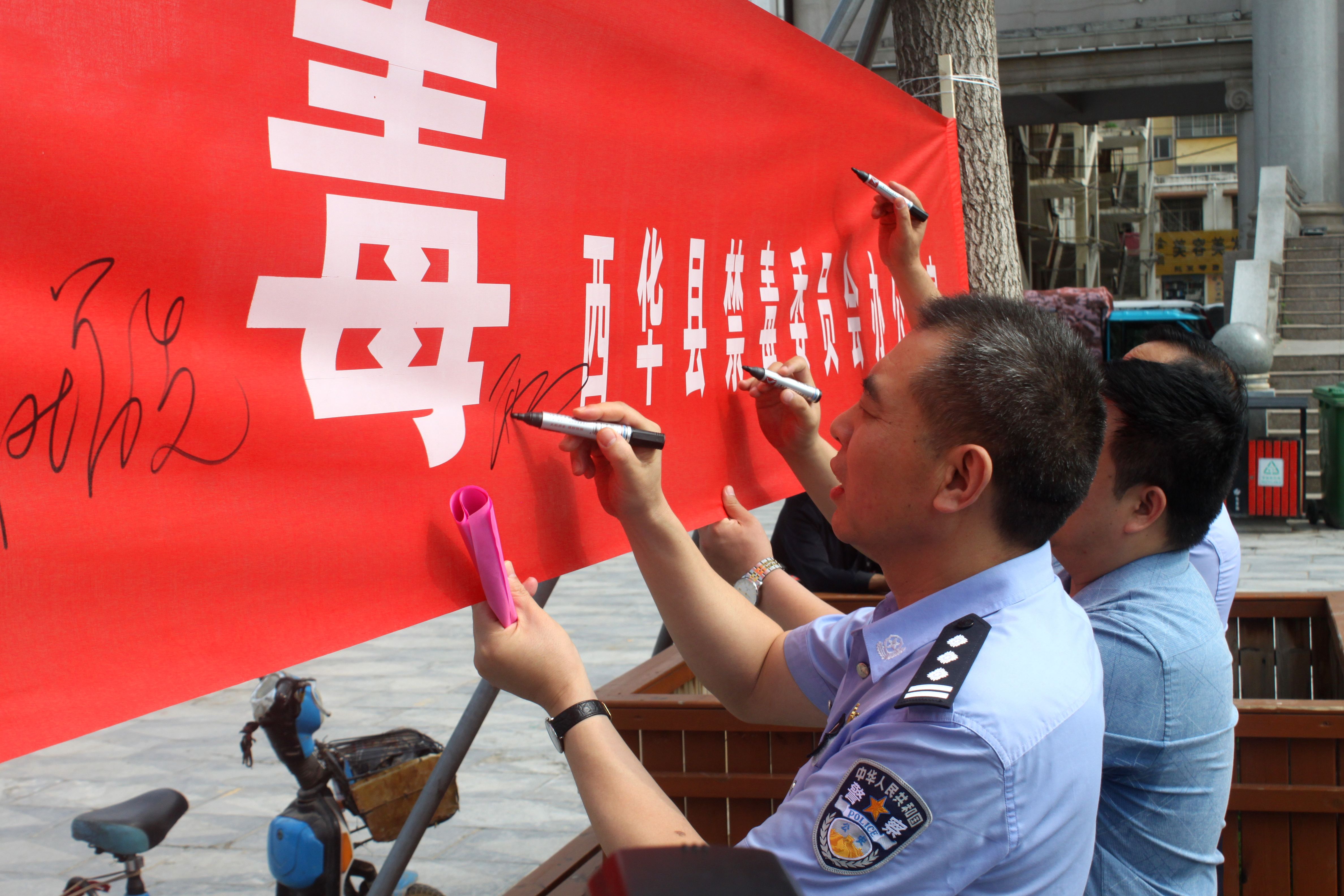 活動(dòng)現(xiàn)場,趙增先在縣公安局政委邢玉周等同志的陪同下,觀看活動(dòng)宣傳展板、在宣傳條幅上簽名,并走上街頭發(fā)放宣傳資料,通過多種形式向過往群眾普及禁毒知識,倡導(dǎo)群眾珍愛生命、拒絕毒品,號召大家一同加入全民禁毒大家庭,齊心協(xié)力共同抵制毒品。