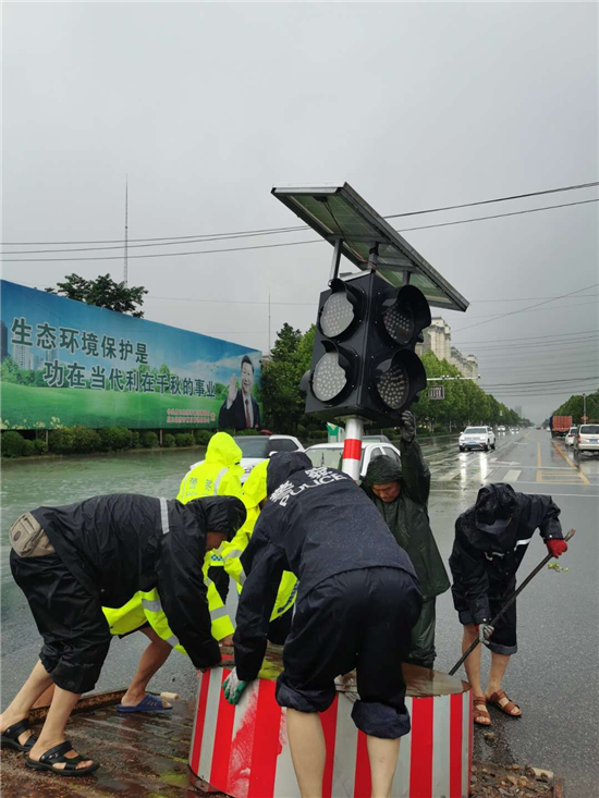 大雨滂沱,交通擁堵。7月22日,針對(duì)市區(qū)降大雨且部分路段出現(xiàn)嚴(yán)重積水的情況,交警及時(shí)啟動(dòng)惡劣天氣應(yīng)急預(yù)案,迅速投入到工作中。