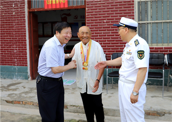 在90歲五級(jí)因戰(zhàn)殘疾軍人劉德山家,大伙認(rèn)真聽(tīng)劉德山講述部隊(duì)的故事;汲冢鎮(zhèn)黃竹園行政村劉老家村88歲劉應(yīng)平參加過(guò)抗美援朝,如今年邁的老劉嚴(yán)重耳聾、語(yǔ)言交流障礙,還得靠親屬“翻譯”才能搭上一兩句話,當(dāng)聽(tīng)到問(wèn)他生活好不好時(shí),老劉興奮地豎起拇指說(shuō):“好好好”;今年94歲的抗戰(zhàn)老兵丁相廷身體十分硬朗、精神矍鑠,不拄拐、眼不花、耳微聾,得知縣領(lǐng)導(dǎo)要來(lái)慰問(wèn),老丁早早地把自己的軍功章準(zhǔn)備好了,一個(gè)個(gè)掛在胸前,見(jiàn)面一個(gè)軍禮彰顯剛強(qiáng)作風(fēng)。從1945年入伍至1950年復(fù)員,老丁記得清楚、講得明白,大伙聽(tīng)得有味、不停點(diǎn)贊;巴集鄉(xiāng)段寨村92歲抗美援朝老戰(zhàn)士段相士有個(gè)堅(jiān)持幾十年的好習(xí)慣,他每天早上都在村里走一圈,感受美麗鄉(xiāng)村變化,再用溫水抹抹澡,保持健康體魄。