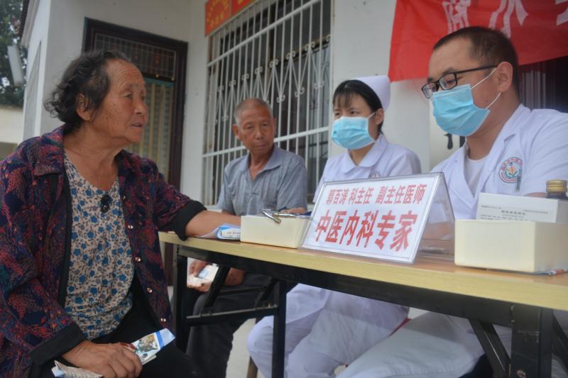 9時(shí)許,偌大的村委大院人來(lái)人往、熱鬧非凡。一些群眾騎著兩輪車(chē)、三輪車(chē)、自行車(chē),有的坐著輪椅、拄著拐杖陸陸續(xù)續(xù)從四面八方趕了過(guò)來(lái)。中醫(yī)師們擺開(kāi)自己的“攤位”迫不及待地為村民進(jìn)行把脈、針灸、開(kāi)方、拿藥、測(cè)血壓等各種診療服務(wù)……