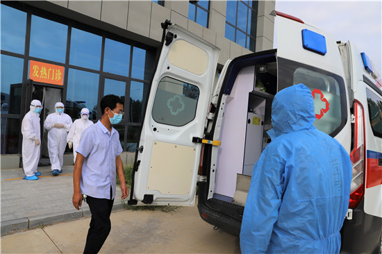 演練中,一名中年男子駕車到港區(qū)醫(yī)院就診,患者自述一周來(lái)在外地居住,無(wú)發(fā)熱癥狀,近一天來(lái)有氣促,活動(dòng)后胸悶、氣促加重,偶有咳嗽。經(jīng)急診科醫(yī)生多次詳細(xì)詢問(wèn)流行病學(xué)史,發(fā)現(xiàn)患者有隱瞞病史嫌疑(一周前同室居住工友,23日已確診為新冠患者),確定該病員為可疑新冠病毒肺炎患者。立即電話通知科主任及醫(yī)療救治專家組成員會(huì)診,根據(jù)患者主訴和臨床表現(xiàn),專家組分析高度懷疑病人為可疑感染新冠病毒病員。立即轉(zhuǎn)運(yùn)至隔離留觀室,并通知傳染病管理小組將疫情上報(bào)至市疾病預(yù)防控制中心,并協(xié)助對(duì)該病員進(jìn)行流行病學(xué)調(diào)查、轉(zhuǎn)運(yùn)及指導(dǎo)消毒、滅菌等工作。經(jīng)市級(jí)專家會(huì)診后,符合疑似病例,按照區(qū)防控指揮部規(guī)定,采用負(fù)壓轉(zhuǎn)運(yùn)車轉(zhuǎn)運(yùn)定點(diǎn)醫(yī)院治療。