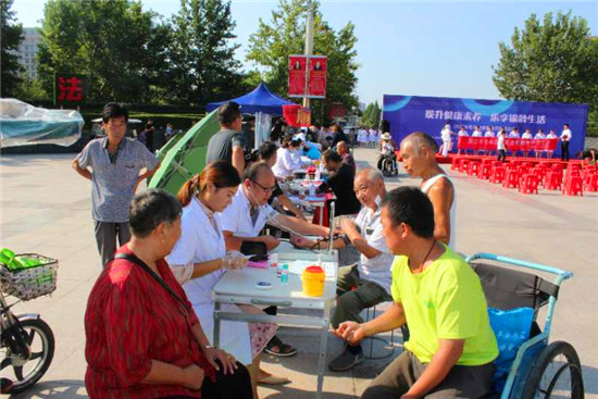 儀式現(xiàn)場(chǎng),多家單位負(fù)責(zé)人宣讀了“提升健康素養(yǎng) 樂享銀齡生活”倡議書。儀式結(jié)束后,現(xiàn)場(chǎng)舉行大型義診、健康咨詢、文藝表演等活動(dòng)。市、區(qū)醫(yī)療單位設(shè)立13個(gè)咨詢服務(wù)臺(tái),圍繞“提升健康素養(yǎng) 樂享銀齡生活”活動(dòng)主題,現(xiàn)場(chǎng)普及老年健康知識(shí),通過擺放健康知識(shí)展版、發(fā)放健康宣傳折頁、提供健康咨詢和現(xiàn)場(chǎng)義診服務(wù)等形式,為老年人提供量血壓、測(cè)血糖、測(cè)視力、等健康服務(wù)。針對(duì)常態(tài)化疫情防控中對(duì)老年人的生活照顧、健康管理、醫(yī)養(yǎng)結(jié)合、慢性病預(yù)防等內(nèi)容,結(jié)合老年人特點(diǎn),圍繞營(yíng)養(yǎng)膳食、運(yùn)動(dòng)健康、心理健康、合理用藥等方面展開科普宣傳指導(dǎo),普及老年健康科學(xué)知識(shí)和老年健康相關(guān)政策。叮囑老人做好居家衛(wèi)生,出門戴口罩,做好個(gè)人防護(hù),并針對(duì)老年人常見的高血壓、糖尿病、冠心病等,給予健康評(píng)估和健康指導(dǎo),讓廣大老年人切身感受到社會(huì)的關(guān)懷和溫暖,提高了老年人的健康素養(yǎng),收到了良好的社會(huì)效果。