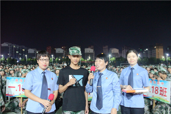 "你們正處于人生的花季,知識(shí)是養(yǎng)分,那么法律知識(shí)就好比是殺蟲劑,要學(xué)好,更要用好,要做到知法、守法、用法,在法治護(hù)航下遠(yuǎn)離校園欺凌,拒絕電信網(wǎng)絡(luò)詐騙,不義之財(cái)不可取,防范之心不可無(wú)……”。8月29日晚上7點(diǎn),黃昏謝去,暮色已經(jīng)模糊起來(lái)了,伴著淺淺的晚霞,扶溝縣檢察院檢委會(huì)專職委員郁玉琴帶領(lǐng)該院“女檢察官特別護(hù)未隊(duì)”的三名女檢察官到扶溝高中為正在接受軍訓(xùn)的1600余名高一新生們上了一堂別開(kāi)生面的法治課。