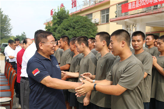9月9日上午,在鹿邑縣預(yù)定新兵役前訓(xùn)練集結(jié)之際,資深媒體人、北京周口企業(yè)商會秘書長、鹿邑縣雙擁愛心協(xié)會發(fā)起人張杰特別邀請享受正軍級職資待遇、終身享受國務(wù)院政府特殊津貼的鹿邑籍將軍畢啟亮,為鹿邑縣343名體檢、政考雙合格的“準(zhǔn)新兵”上了一堂精彩的國防教育課,同時還向“準(zhǔn)新兵”每人捐贈一套由周口商水籍原總政治部秘書長、軍事科學(xué)院副政治委員,第二炮兵副政治委員程寶山中將親手題寫“昨日是鄉(xiāng)親,今天成戰(zhàn)友——從軍報國志高遠,不忘家鄉(xiāng)故土情”的筆記本和鋼筆一支。鹿邑縣人武部部長范亞光,縣退役軍人事務(wù)管理局負責(zé)同志以及鹿邑縣雙擁愛心協(xié)會團體在現(xiàn)場聆聽國防教育課并參加捐贈活動。