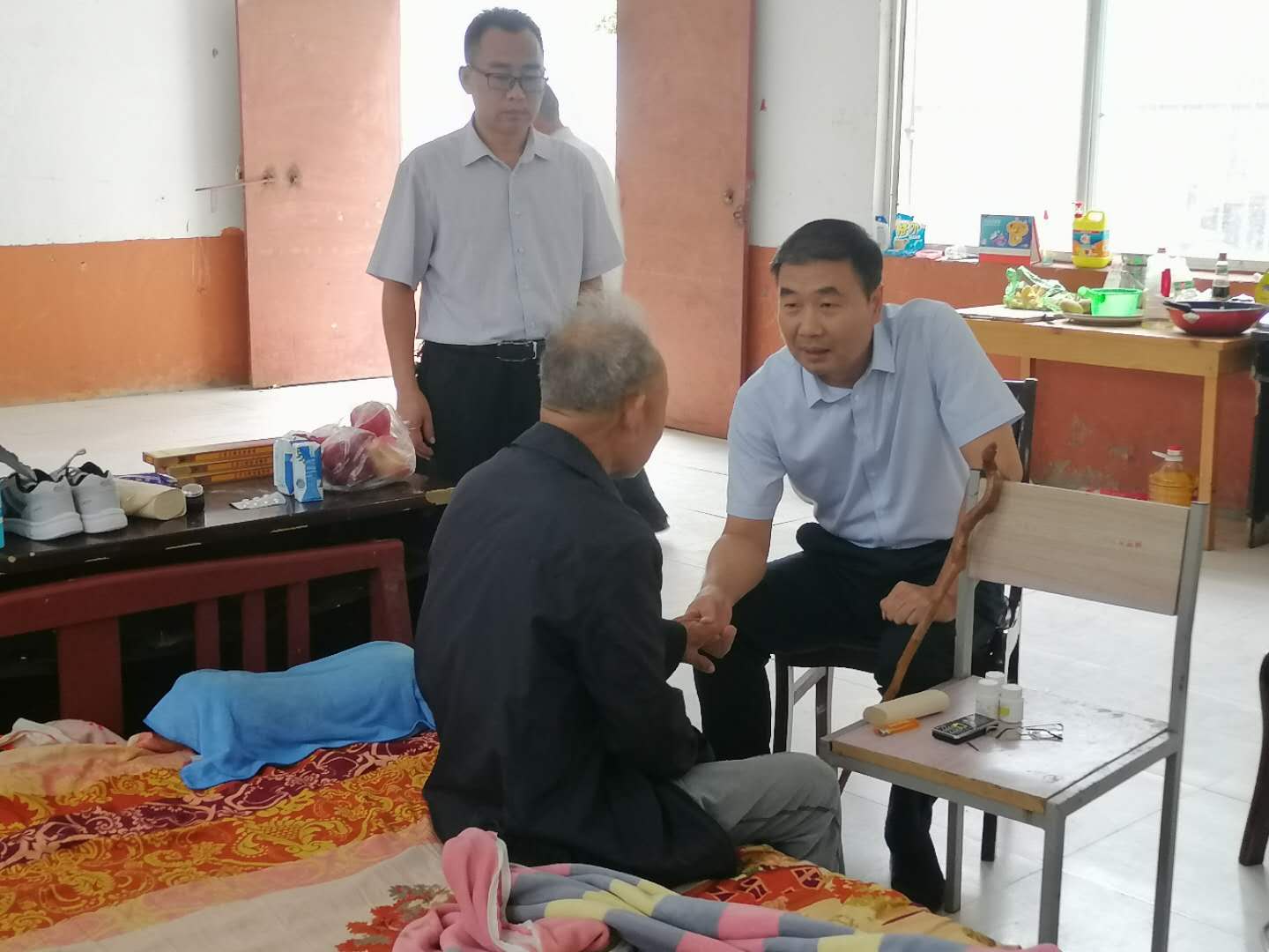 當(dāng)日16時(shí),在三李村村室旁邊的一間房屋內(nèi),孔陽(yáng)一見到坐在床頭的張殿運(yùn),就緊緊拉住他的手,詳細(xì)詢問老人吃的什么藥、效果怎么樣、身體恢復(fù)得如何?他叮囑老人:“你保重好身體就是對(duì)兒子工作的支持,也是對(duì)商水縣扶貧工作的支持?!睆埖钸\(yùn)說(shuō)話困難,表達(dá)不清,嘴唇顫抖半天也說(shuō)不出一句話,只是緊緊地握住孔陽(yáng)的手。得知老人在鹿邑縣宋河鎮(zhèn)農(nóng)村當(dāng)村干部30多年,孔陽(yáng)稱贊他為黨為民工作一輩子,是好樣的。