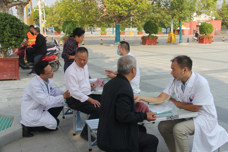 義診活動(dòng)現(xiàn)場,通過懸掛主題宣傳橫幅、擺放健康知識(shí)宣傳展板、設(shè)置義診咨詢服務(wù)臺(tái)、發(fā)放健康促進(jìn)宣傳折頁等方式為群眾進(jìn)行健康知識(shí)宣教。前來咨詢就診的群眾絡(luò)繹不絕,醫(yī)務(wù)人員熱情地為群眾提供免費(fèi)測量血壓、血糖等服務(wù),耐心細(xì)致地解答群眾健康咨詢并給予診療建議,提醒平時(shí)多多加強(qiáng)鍛煉,注意健康飲食。