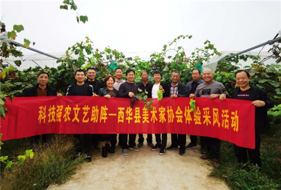 活動期間,高磊帶領創(chuàng)作骨干先后參觀了西華農科所新品種新技術生產示范基地,優(yōu)質葡萄園、優(yōu)質桃園、優(yōu)質梨園、優(yōu)質棗園建設基地,西華縣農科所“空中結薯”試驗景觀現場等,詳細了解西華農業(yè)科研及新品種新技術推廣情況。與會的各位美術創(chuàng)作骨干成員對西華縣農科所積極開展農業(yè)科學研究,實施科技強農戰(zhàn)略,依托“院縣共建”“四優(yōu)四化”大力推廣新品種新技術助力鄉(xiāng)村振興等方面取得的成績給予高度評價。